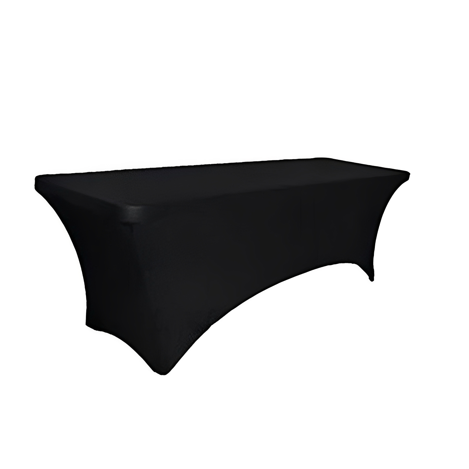 Our new Black Stretch Table Cover is a great solution for showcasing products at any event. The Table Throw conforms to folding tables for a pleasing modern profile. Printed and promotional items will really pop on this rich black surface. Available in 4ft, 6ft and 8ft sizes. Also great for product photography or when paired with one of our full color custom table runners.