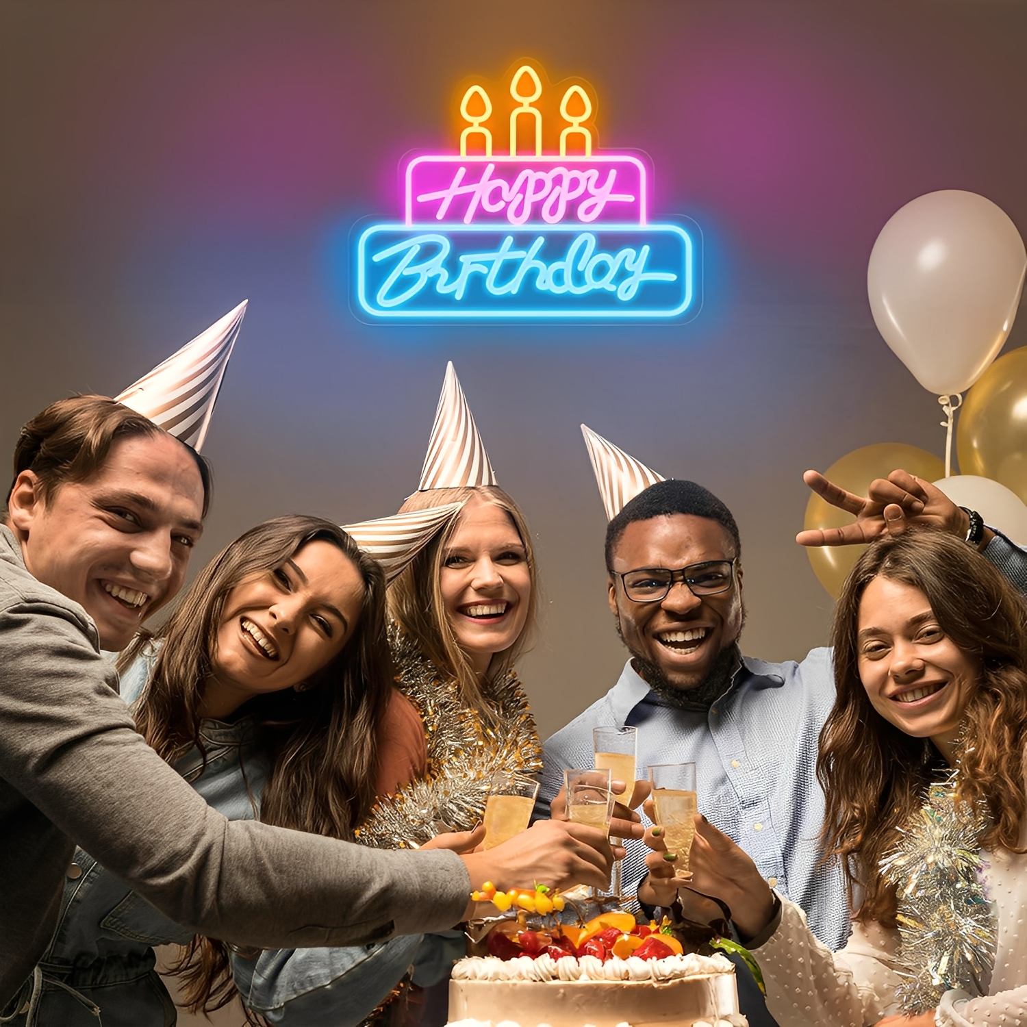Happy Birthday Cake Shape Neon Sign